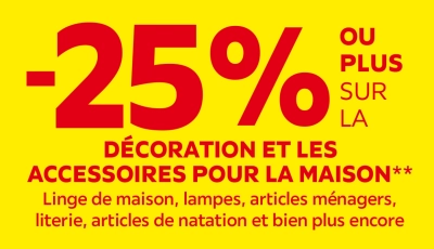 -25% OU PLUS SUR LA DÉCORATION ET LES ACCESSOIRES POUR LA MAISON**